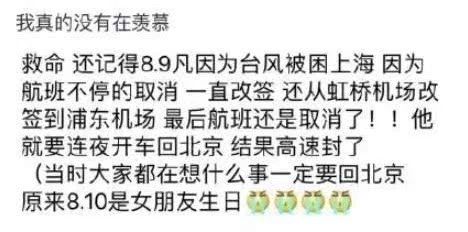 Ngày 09.08, có cư dân mạng tiết lộ vì cơn bão mà Ngô Diệc Phàm mắc kẹt ở Thượng Hải, chuyến bay liên tục bị dời lại. Ngô Diệc Phàm thay đổi chuyến bay, thậm chí là di chuyển đến sân bay khác nhưng cuối cùng chuyến bay vẫn bị hủy bỏ. Vì vậy, anh chàng buộc phải lái xe ngay trong đêm, tức tốc chạy về Bắc Kinh. Lúc đó, fan hâm mộ không thể hiểu vì sao Ngô Diệc Phàm lại bất chấp tất cả về Bắc Kinh như vậy, nhưng bây giờ thì đã rõ nguyên nhân rồi.