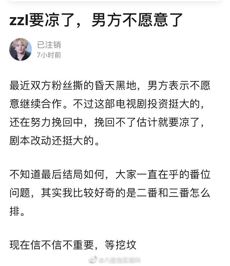 “Gần đây, fan hâm mộ hai bên chỉ trích, mỉa mai lẫn nhau làm “kinh thiên động địa”, nhà trai bày tỏ không muốn tiếp tục hợp tác. Tuy nhiên bộ phim truyền hình này được đầu tư rất lớn, vẫn còn đang cố gắng cứu vãn tình hình bên trong, nếu không thể cứu vãn nổi e rằng phải xếp kho, ngưng lại toàn bộ. Không biết kết cục như thế nào, mọi người đều đặt nặng vấn đề phiên vị (thứ tự tên tuổi của diễn viên tham gia được sắp xếp trên poster và thông tin của bộ phim). Hiện tại, chỉ có thể âm thầm theo dõi tin tức mà thôi“.