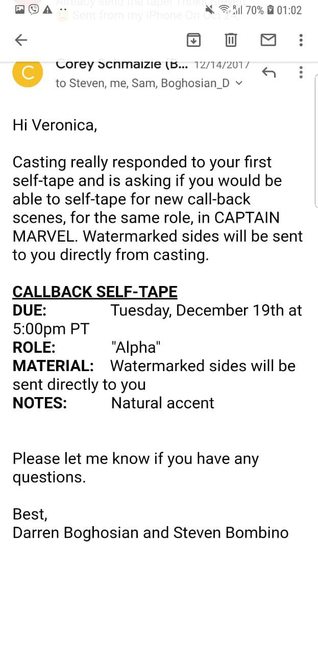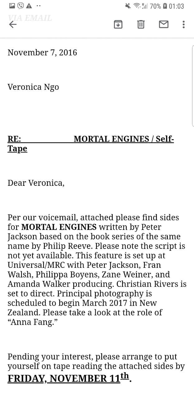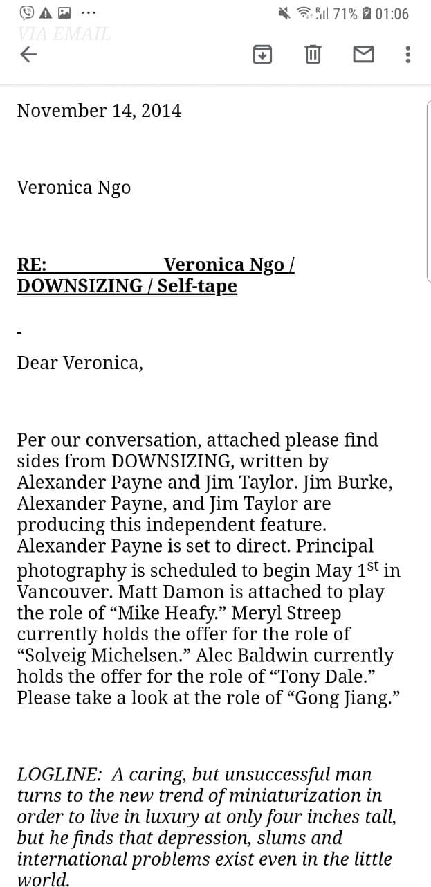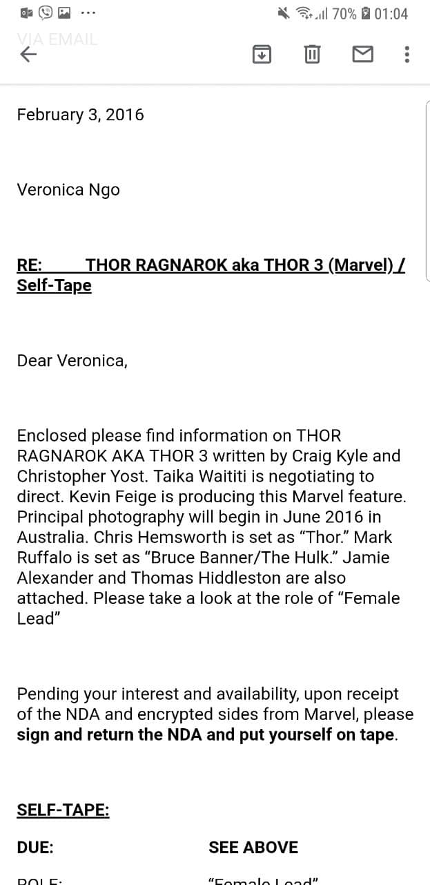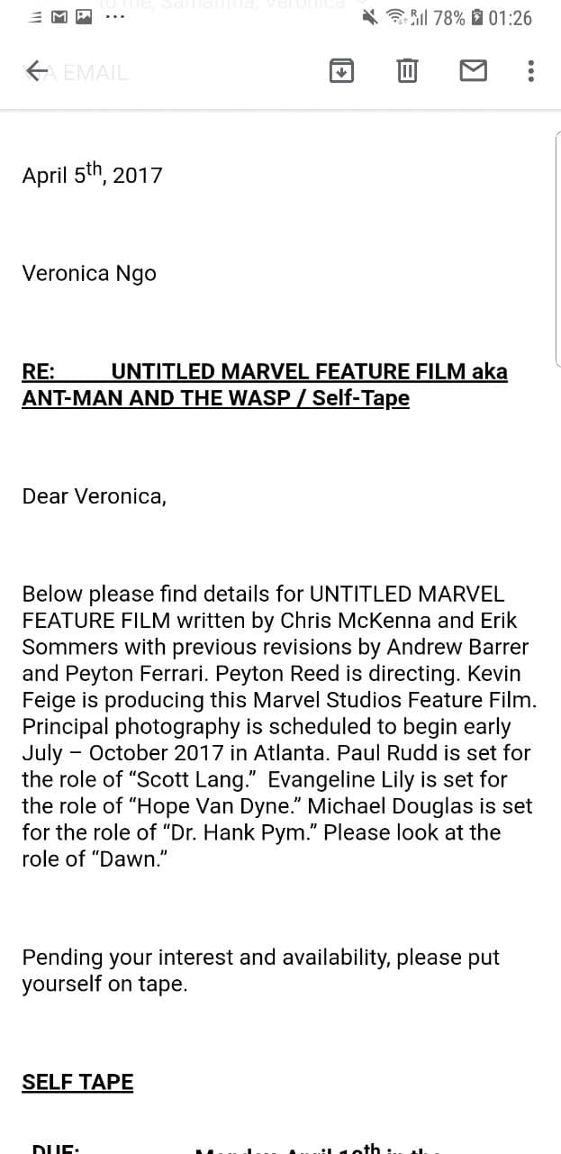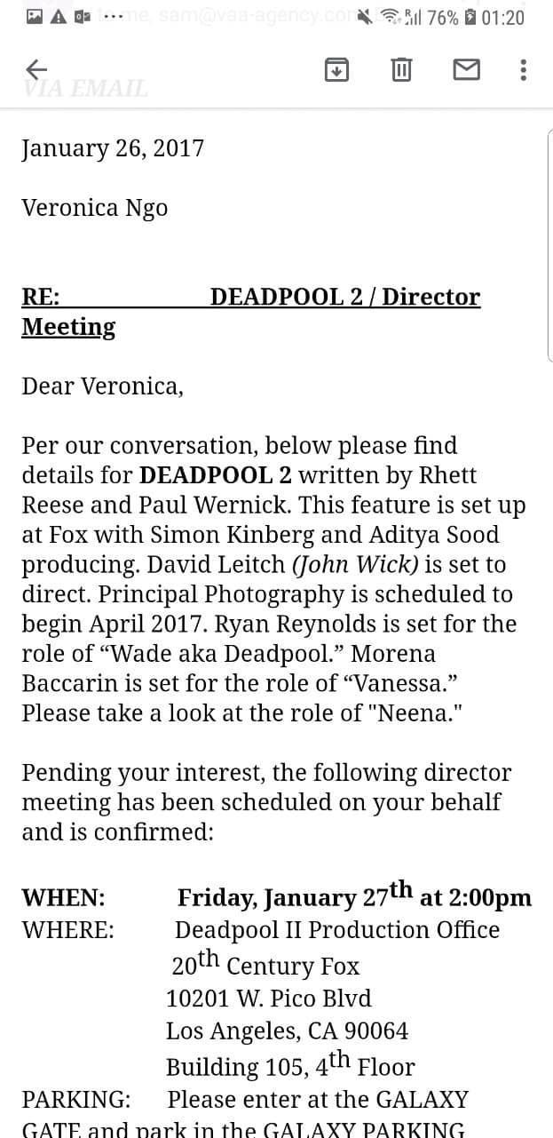 Email phúc đáp việc Ngô Thanh Vân casting vai diễn trong phim riêng về Harley Quinn - Birds of Prey.