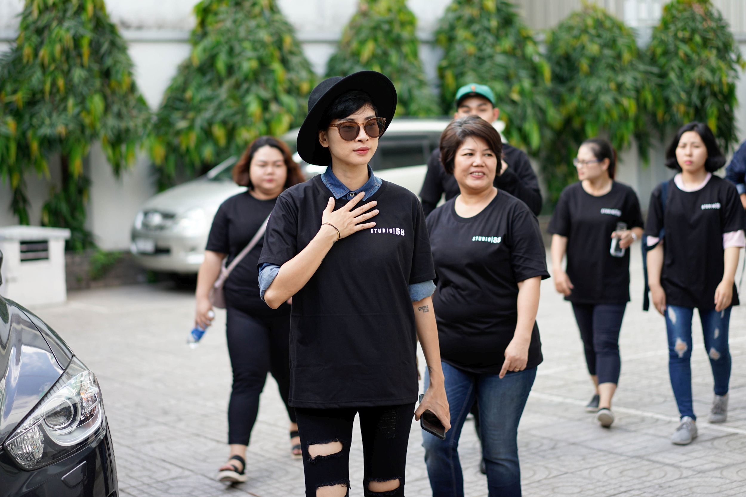 “Đả nữ” đơn giản trong trang phục ekip sản xuất.