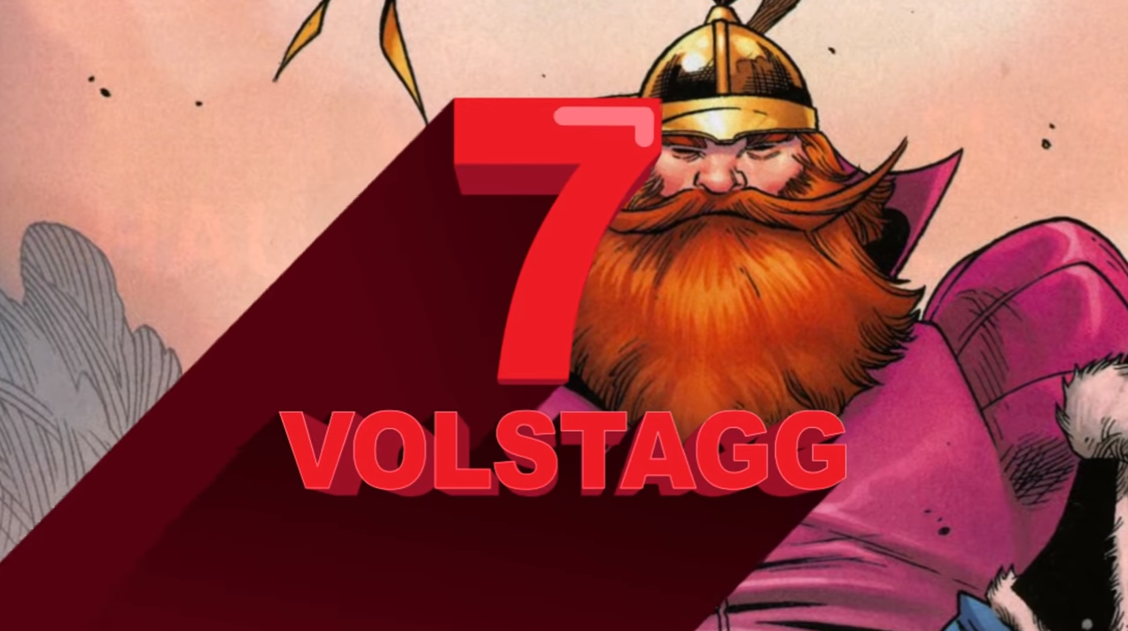 Được mệnh danh là 1 trong 3 chiến binh mạnh nhất xứ Asgard, Volstagg sở hữu thân hình to lớn đồ sộ, đặc biệt là mái tóc cùng bộ râu đỏ rất dài.