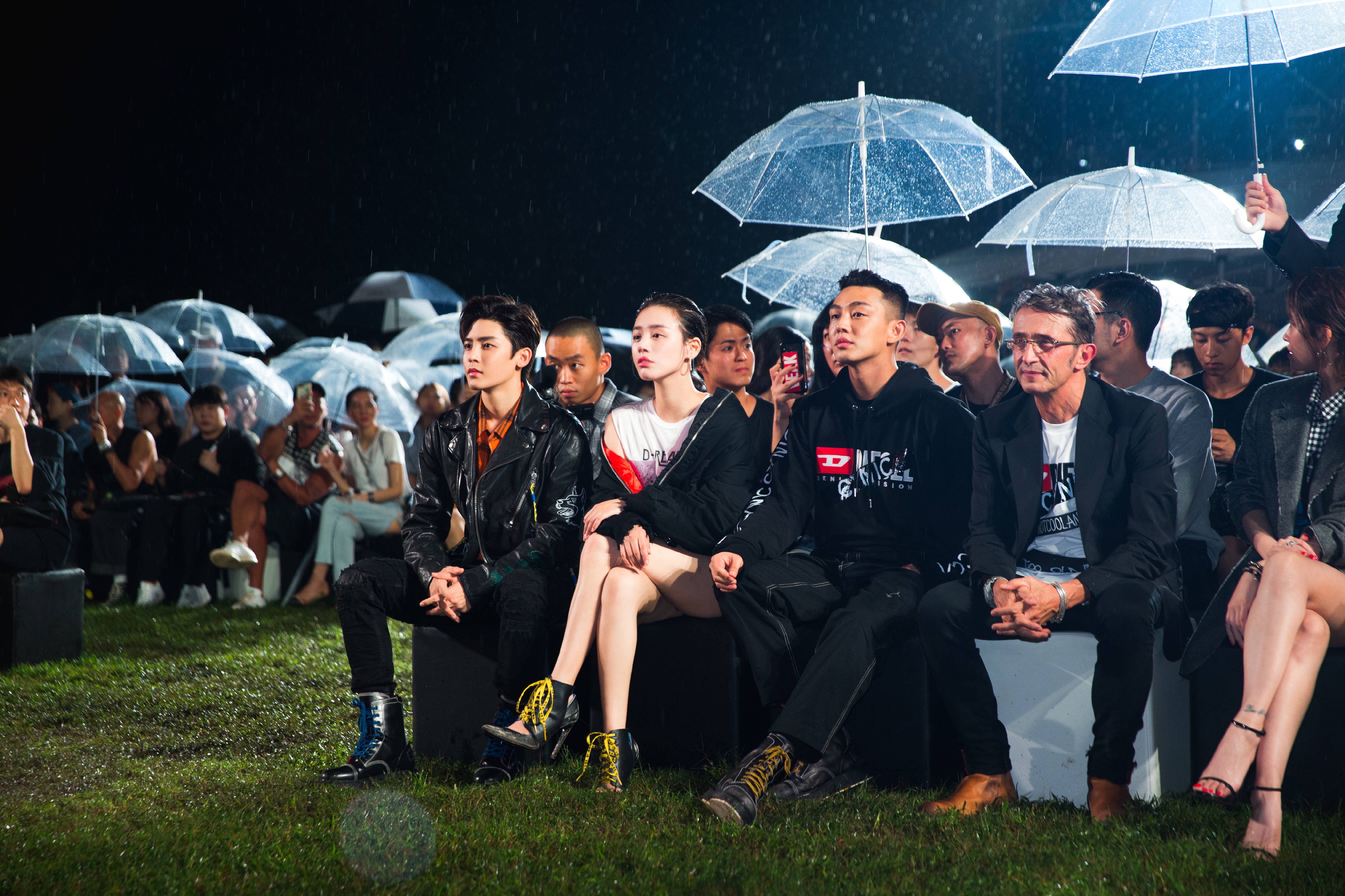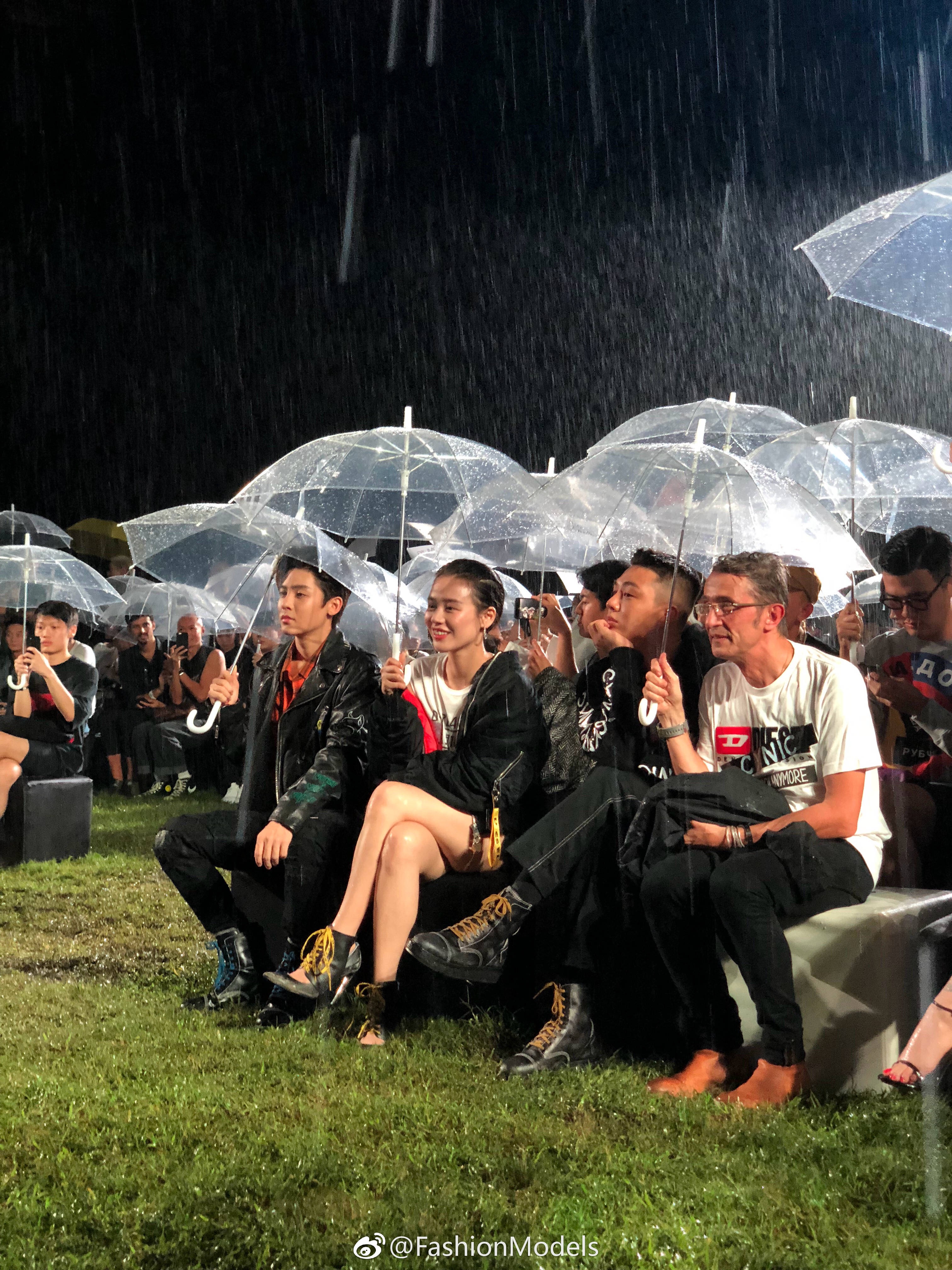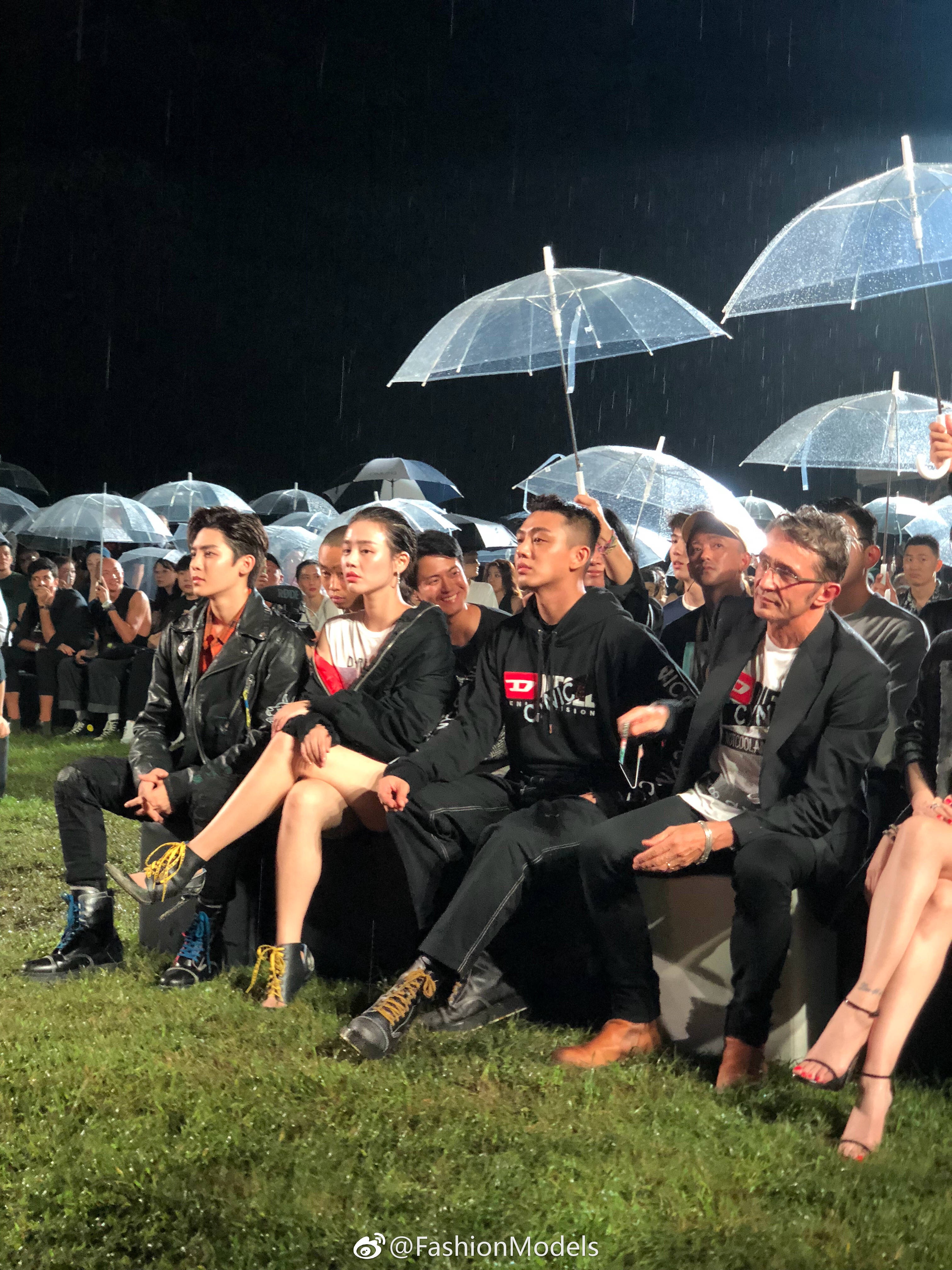 Vào tối ngày 20/09 vừa qua, nam diễn viên Yoo Ah In, Đường Nghệ Hân, Hầu Minh Hạo, Mã Tư Thuần,…đã tham dự buổi trình diễn thời trang của thương hiệu DISESEL được tổ chức Trung Quốc. Mặc cho trời mưa lớn, những ngôi sao vẫn ngồi thưởng thức và người mẫu không ngại dầm mưa để mang lại phần trình diễn ấn tượng.