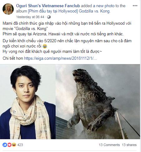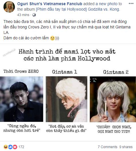 Trước sự kiện trọng đại thần tượng được debut tại Hollywood, nhiều fan hâm mộ của Oguri Shun tại Việt Nam vô cùng phấn khởi hạnh phúc. Được biết fan hâm mộ Oguri Shun tại Việt Nam thường âu yếm gọi anh là “má”, “mami” và họ đã có những phản ứng ‘thú vị’ như sau: