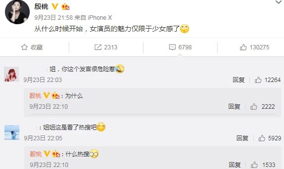 Có điều, cũng có một số dân mạng chỉ trích không cần phải nói cảm giác thiếu nữ gì đó vì dù sao cũng đã là người 37 tuổi rồi, không còn trẻ gì nữa. Nhưng điều ngoài ý muốn chính là nữ minh tinh Ân Đào (Nữ diễn viên chính của Võ Tắc Thiên bí sử) đăng bài viết cho rằng: “Không biết từ lúc nào sức hút của nữ diễn viên chỉ còn nằm giới hạn ở cảm giác thiếu nữ”.