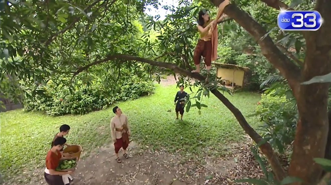 Cảnh Karakade trèo cây hái xoài cho con được người xem mong đợi.