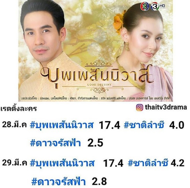 Tối ngày 28/03, tập 11 của Buppae Sunniwas (Ngược dòng thời gian để yêu anh) lên sóng đã chính thức vượt qua rating của siêu phẩm Nakee (Nữ thần rắn). Cụ thể tỷ xuất xem đài ghi nhận ở tập 11 đạt 17,4%. Trong khi đó, kỷ lục rating mà Nakee - tác phẩm truyền hình hot nhất năm 2016 đã đạt được là 17,291% ở tập 11 và cũng là tập cuối của phim.