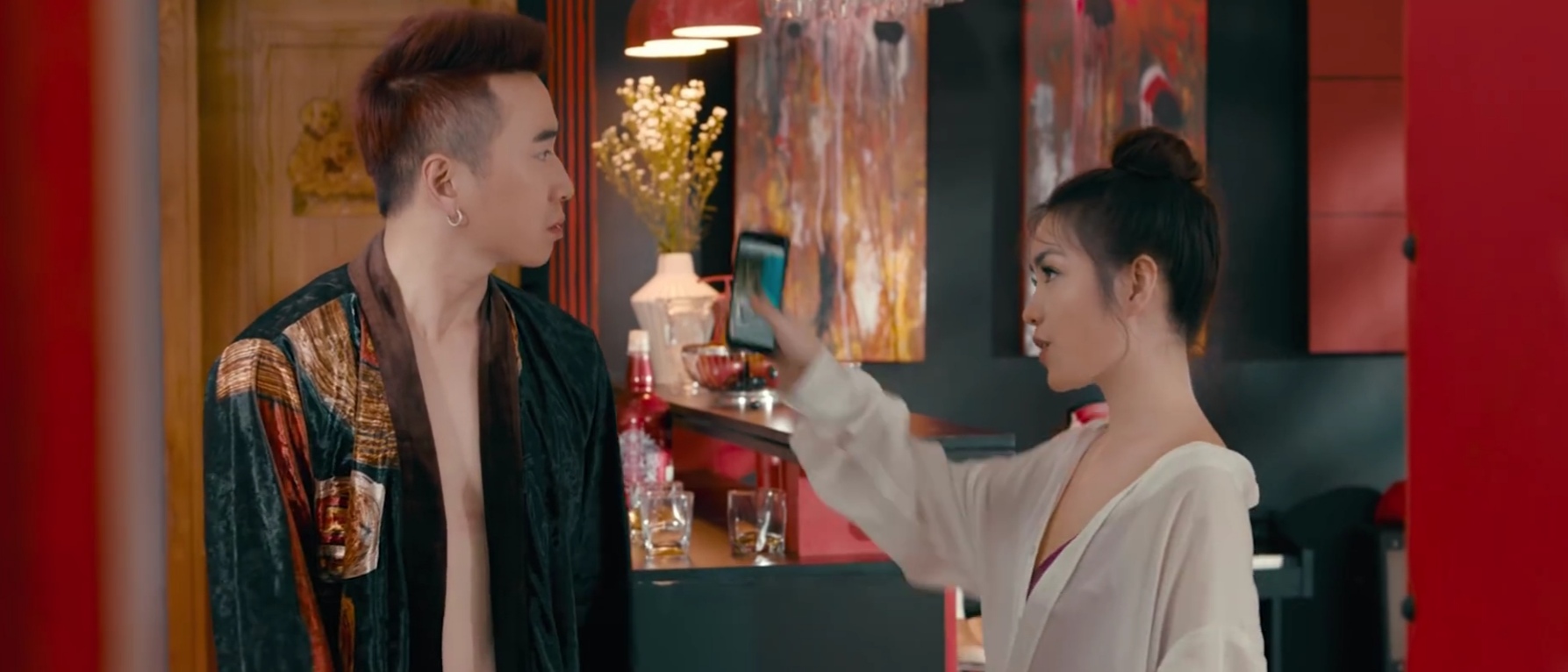 Chưa dừng lại ở đó khi mạch chính của phim thực chất không nghiêng hoàn toàn về mối quan hệ giữa Đăng và cô tiểu thư si tình tên Nhung (Trịnh Thảo), sợi dây trói chặt bước chân của anh chàng là do “thánh nữ vũ trụ” đến từ Sao Kim tên Trinh (Thùy Anh). Mang trong mình sứ mệnh bảo vệ dòng tộc trước nguy cơ bị xâm lược, Trinh xuống trái đất với mục đích “động phòng hoa chúc” cùng Đăng nhằm “unlock” sức mạnh tạm thời, tránh để kẻ ác chiếm đoạt nguồn năng lượng trời phú. Để rồi không những là người lạ của Đăng mà còn khiến anh hoảng loạn khi liên tục sử dụng sức mạnh để khống chế đối phương, Trinh sau cùng cũng thuyết phục được bad boy lãng tử nguyện ý “trao thân”.