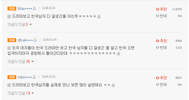 1. [+437, -25] Chắc họ đã cho rằng tất cả đàn ông Hàn Quốc đều đẹp trai như trong phim truyền hình ㅋㅋㅋ ㅋㅋㅋ
