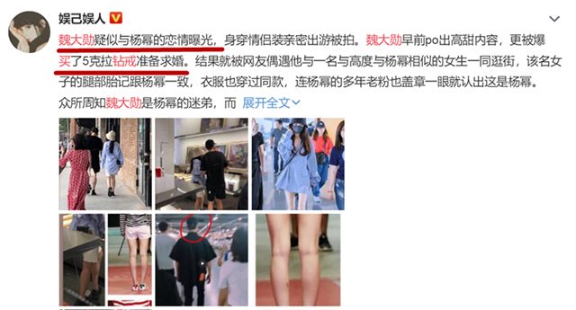 Hôm nay, trên mạng lan truyền bức ảnh Ngụy Đại Huân hẹn hò với một cô gái bí ẩn. Sau “tài thám tử, điều tra” của dân mạng, cuối cùng cũng tìm ra được người con gái ấy chính là nàng tiểu hoa nổi tiếng Dương Mịch. Tất cả đều dựa vào dáng đi, trang phục và quan trọng nhất là vết bớt trùng khớp với nữ diễn viên nổi tiếng.