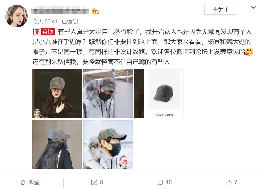 Mới đây, dân mạng tiếp tục soi ra chi tiết đáng ngờ giữa hai người họ. Có thể thấy Dương Mịch và Ngụy Đại Huân lại lộ chuyện đồ đôi hoặc dùng chung mũ với nhau khi cả hai có cùng mũ kết với thương hiệu tương đồng.
