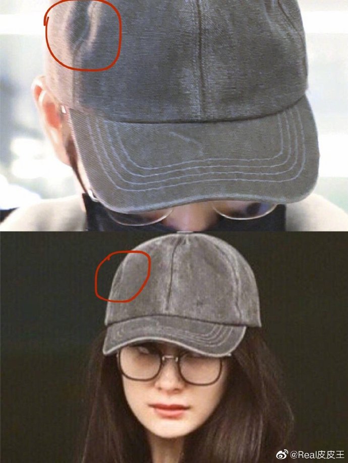 Thế nhưng, nhìn kỹ chi tiết trên chiếc mũ, có thể thấy vết trầy trên vành trước mũ của Dương Mịch và Ngụy Đại Huân trùng hợp trên từng milimet, thêm vào đó vết lõm trên mũ của cả hai cũng rất khớp với nhau.