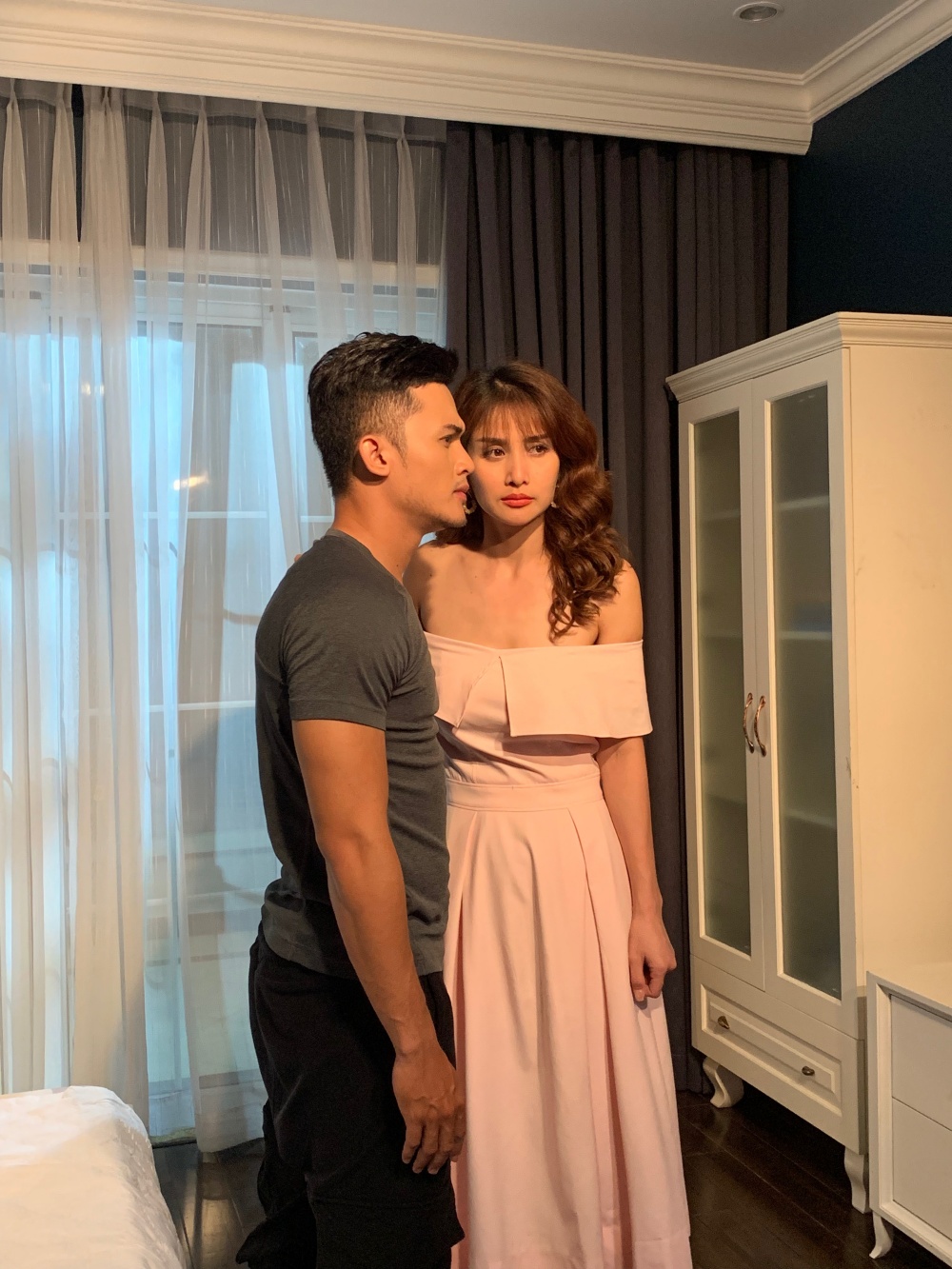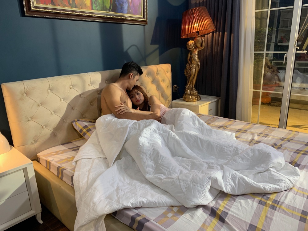 Hai diễn viên tỏ ra khá ngại ngùng nhưng vẫn phối hợp ăn ý khi diễn cảnh nóng trong phim.