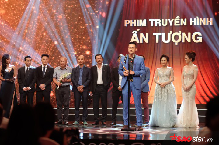 Đạo diễn Nguyễn Khải Anh (áo xanh) phát biểu trao VTV Awards 2017.