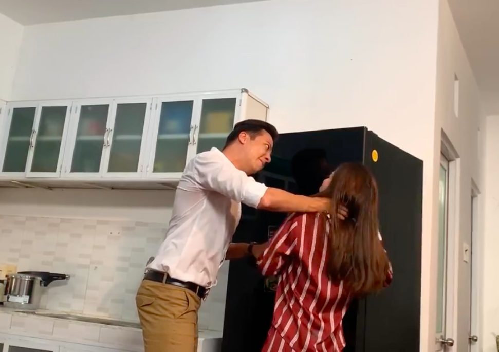 Clip Quỳnh Nga bị người tình bạo hành trong phim.