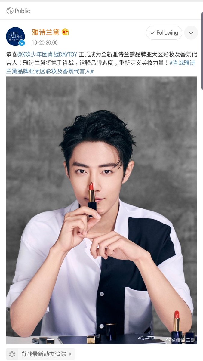 Dân mạng gần đây tiết lộ ekip của Nhậm Gia Luân hiện đang nhắm đến danh hiệu “đại sứ thương hiệu Estee Lauder tại khu vực Châu Á - Thái Bình Dương” của Tiêu Chiến. Estee Lauder không ký kết hợp đồng hợp tác dài hạn với Tiêu Chiến nhưng vì khả năng thu hút người mua thật sự tốt, doanh thu ngày càng tăng nên phía nhãn hàng đang suy nghĩ về việc tiếp tục ký kết hợp đồng mới. Hành động của ekip Nhậm Gia Luân hiện như công khai tuyên chiến với bên Tiêu Chiến.