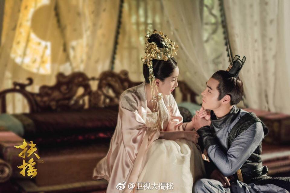 Cặp đôi Đài Loan Trần Kiều Ân và Trần Hiểu kết hợp trong “Độc Cô Hoàng Hậu”. Ánh mặt cặp đôi trao cho nhau rất tình tứ.