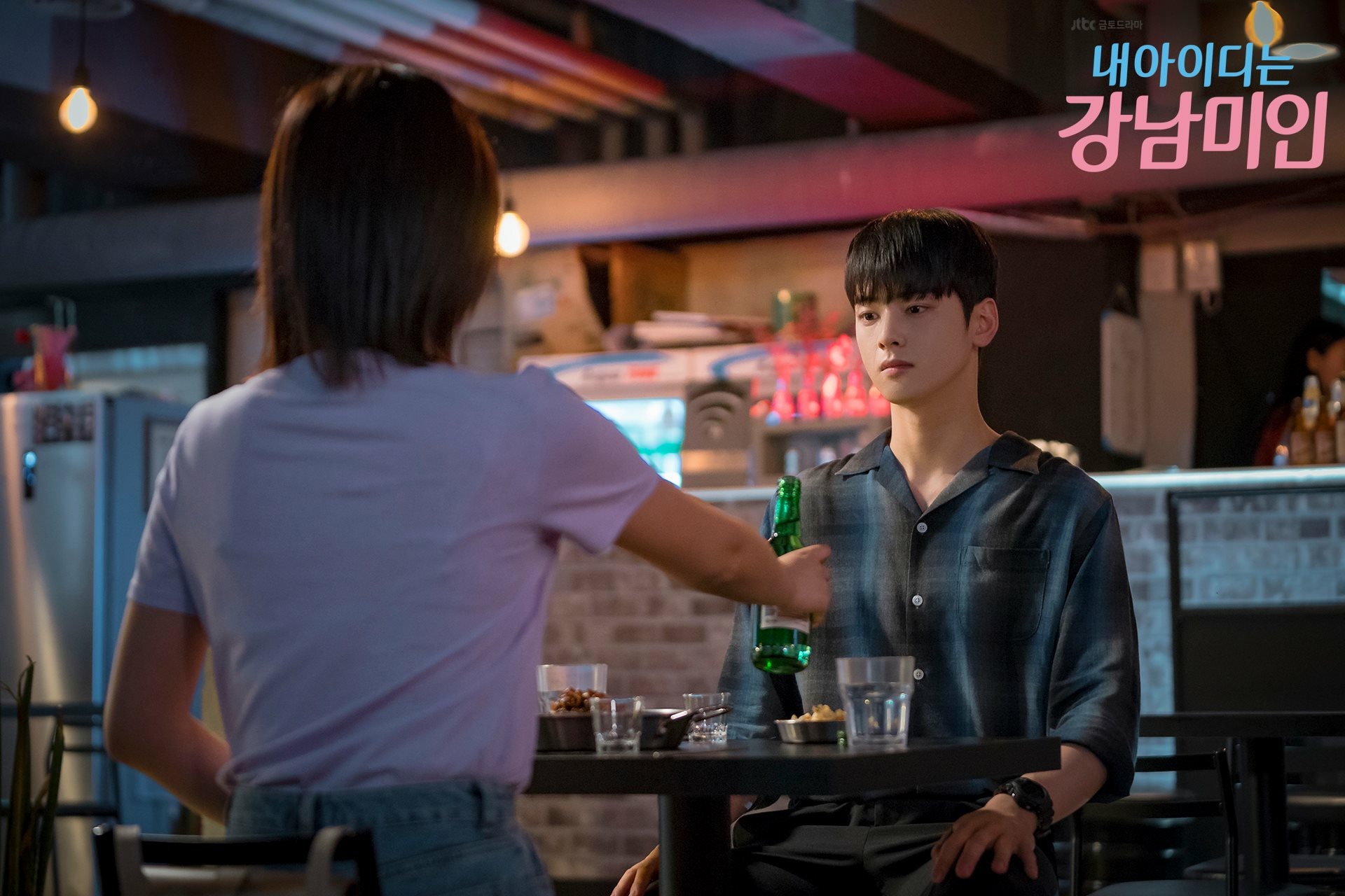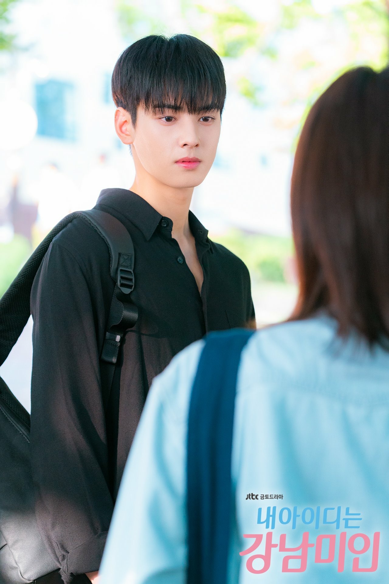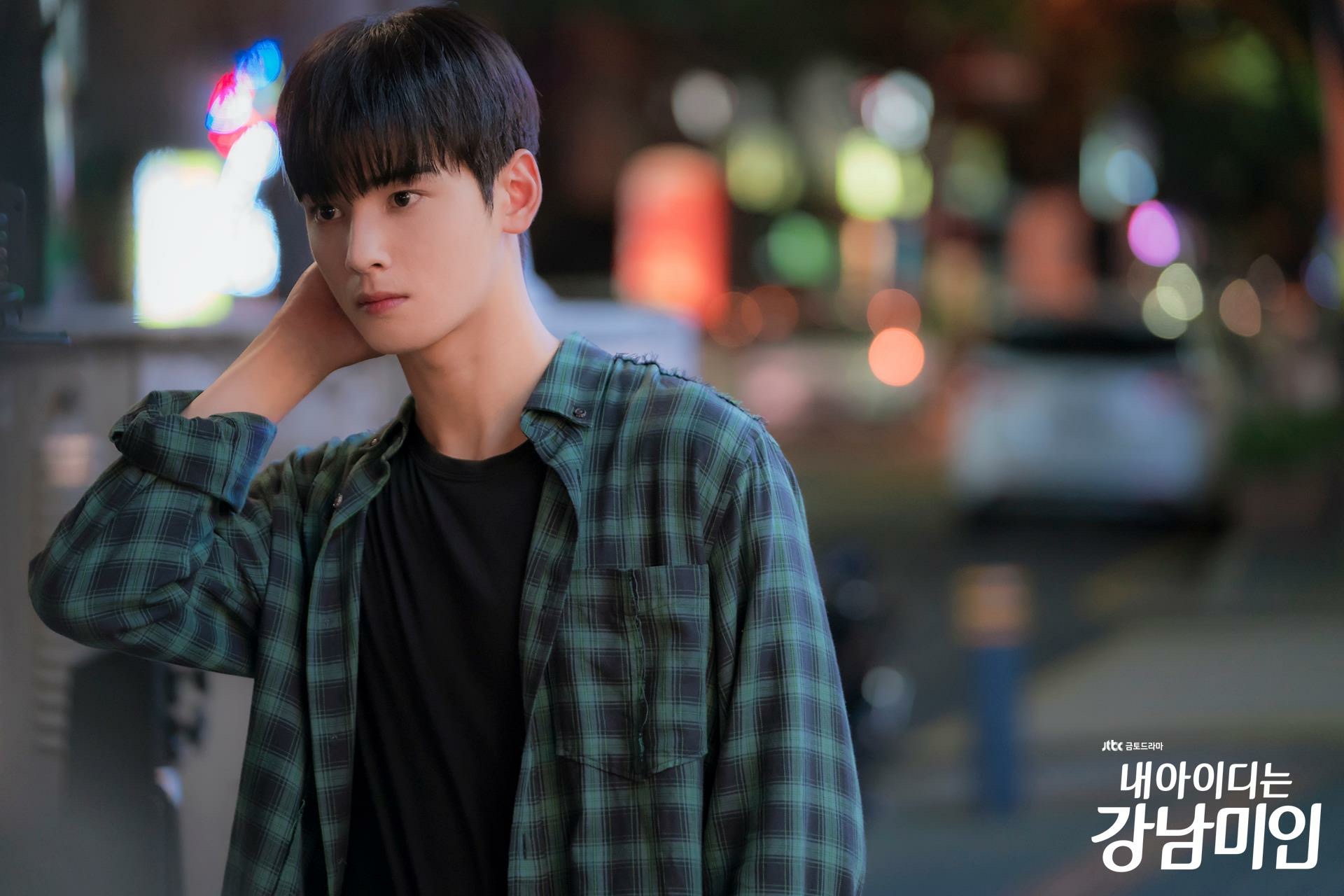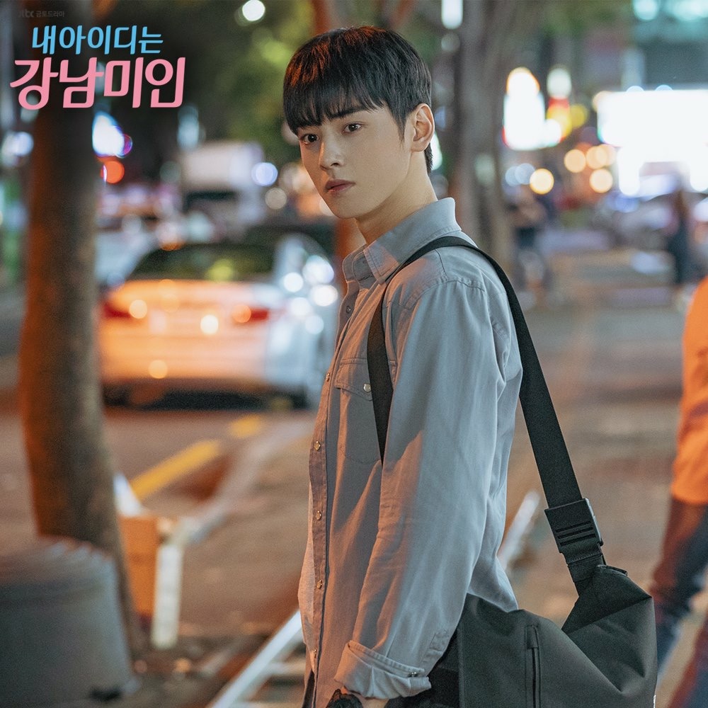 Trong khi đó, ở bộ phim “Người đẹp Gangnam”, Cha Eun Woo đảm nhận vai Do Kyung Suk, một sinh viên đại học đẹp trai, cậu được rất nhiều bạn học chú ý bất cứ khi nào xuất hiện.