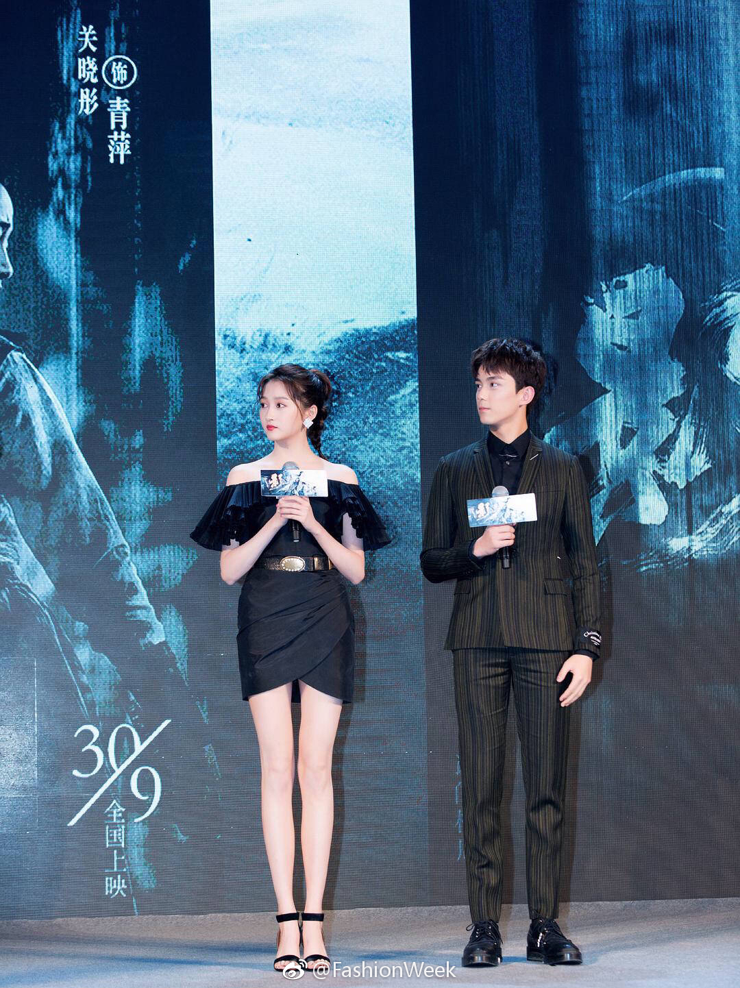 Khi đứng cạnh bạn diễn nam, Quan Hiểu Đồng còn khiến mọi người bất ngờ vì đôi chân dài của mình.