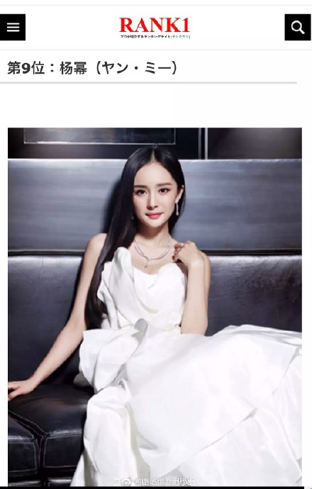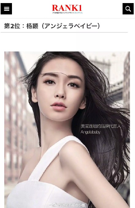 Mới đây, một trang mạng Nhật Bản tổng hợp các số liệu thông qua các trang mạng khác nhau đã đưa ra bảng xếp hạng về những nữ minh tinh Trung Quốc sở hữu giá trị nhan sắc cao. Trong bảng xếp hạng này gồm những cái tên như Phạm Băng Băng, Angelababy, Triệu Lệ Dĩnh..
