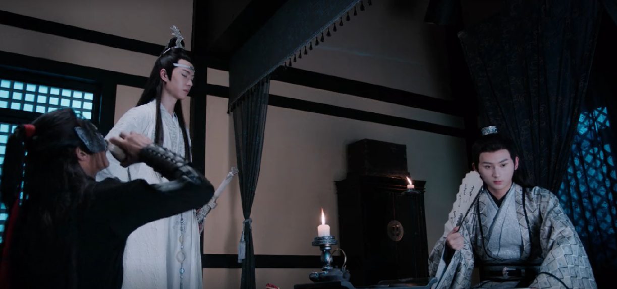 Trước lúc vào phòng, Lam nhị công tử có nhắc Tiện Tiện đeo mặt nạ để đi gặp “một vị bằng hữu cũ”, nói hơi phũ phàng nhưng đây là một hành động rất vô dụng.