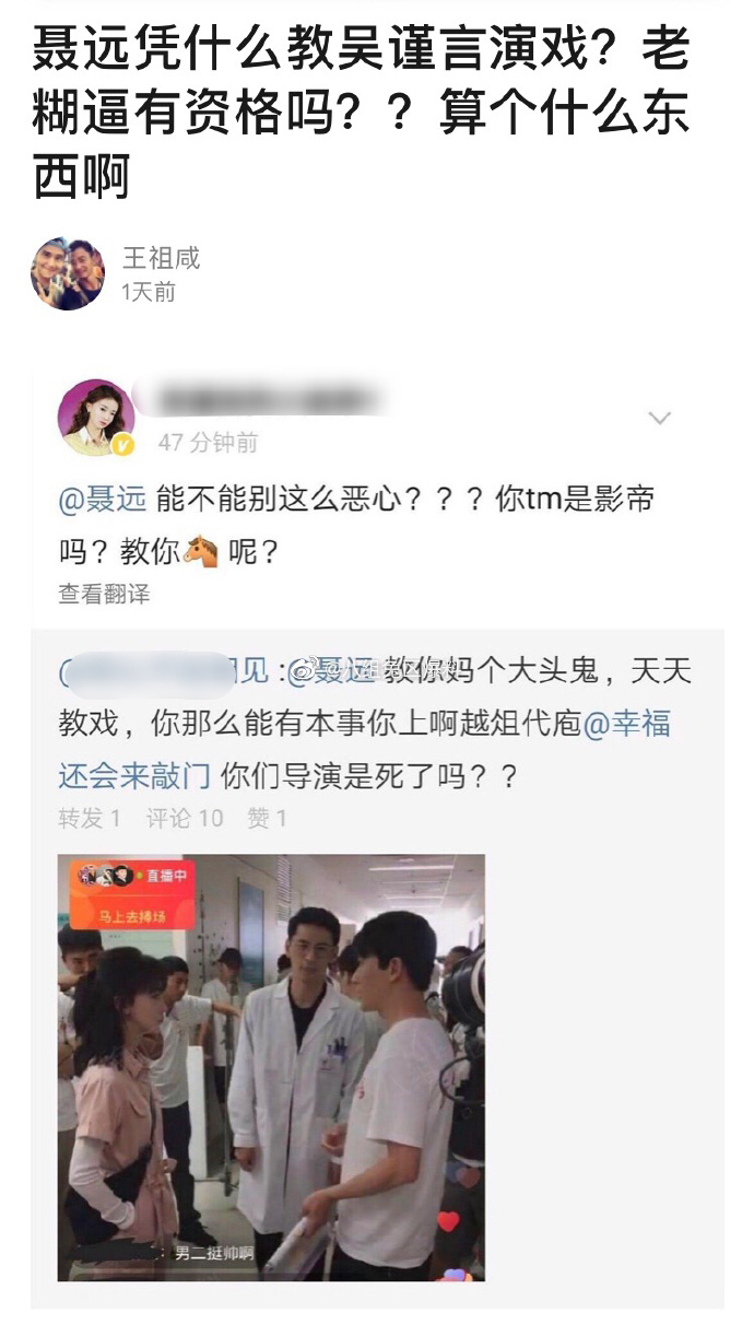 - @Nhiếp Viễn nghe nói ngươi lại chạy đi dạy cách diễn nữa rồi? Trước tiên không lo học làm người đi, ở đó vượt quá giới hạn lo luôn chuyện của đạo diễn.