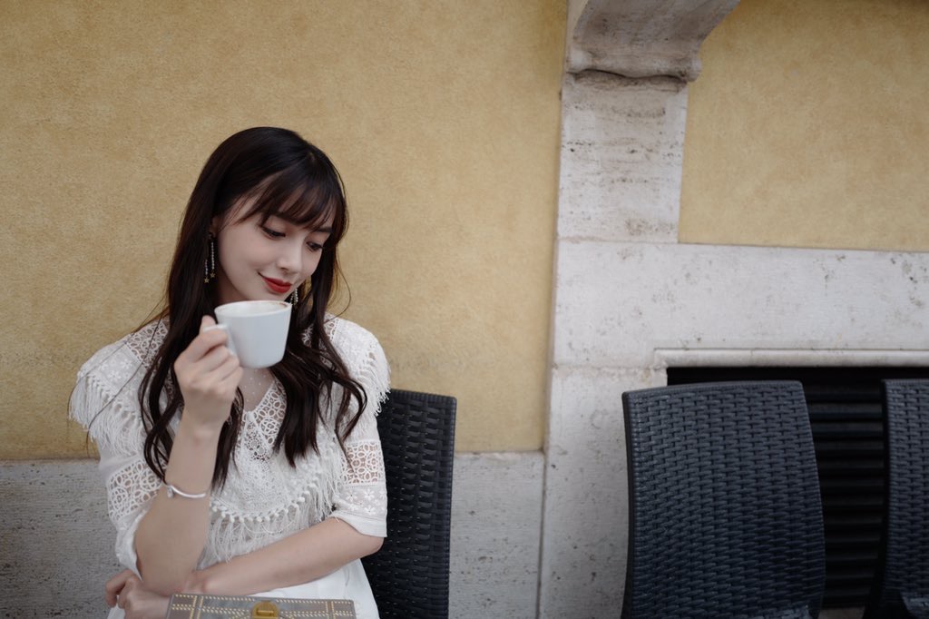 Angela Baby nhâm nhi cà phê vào một buổi chiều tà.