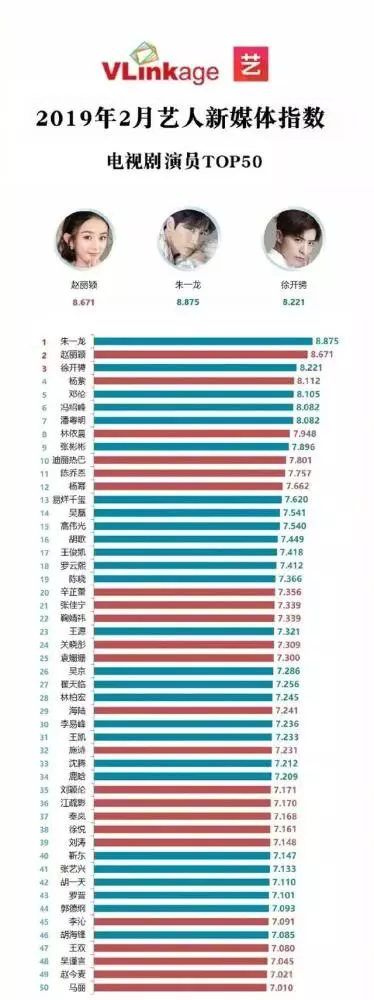 Ba người đứng đầu trong bảng xếp hạng chỉ số truyền thông tháng 2 gồm có Chu Nhất Long, Triệu Lệ Dĩnh và Từ Khai Sính. Phim truyền hình Tại sao boss muốn cưới tôi do Từ Khai Sính đảm nhận vai chính công chiếu, đánh bại sự lũng đoạn của Minh Lan truyện.
