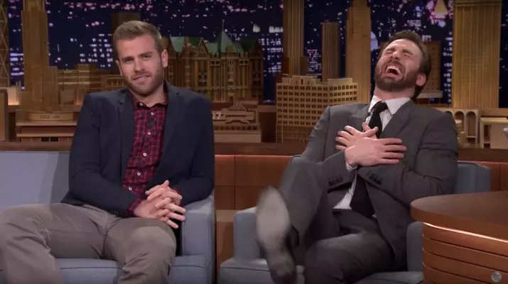Thế nhưng, với người hâm mộ điện ảnh khi nhìn thấy hình ảnh này, ngay lập tức sẽ nhớ đến ngôi sao Chris Evans của Hollywood - người có nụ cười trứ danh. Mỗi khi nam diễn viên Captain America cười sảng khoái, anh thường đặt 2 tay bắt chéo lên ngực của mình như sợ nó… rơi ra ngoài. Có lúc anh chỉ để một tay, nhưng chắc chắn lúc nào cười thì ngực anh cũng được bảo vệ… kỹ càng.