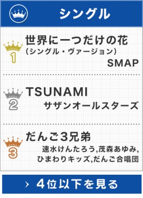 Ở mảng âm nhạc, single bán chạy nhất thời Heisei là Sekai Ni Hitotsu Dake No Hana (Đóa hoa duy nhất trên thế giới) của nhóm SMAP phát hành vào ngày 5/3/2003. Single này đã tiêu thụ 3.128.000 bản. Ca khúc Sekai Ni Hitotsu Dake No Hana được người dân Nhật Bản ưu ái gọi là Quốc ca không chính thức của Nhật Bản. Chương trình Music Station Ultra Fes phát sóng vào năm 2016 đã công bố Sekai ni Hitotsu Dake no Hana của SMAP là ca khúc có sức ảnh hưởng nhất Nhật Bản.