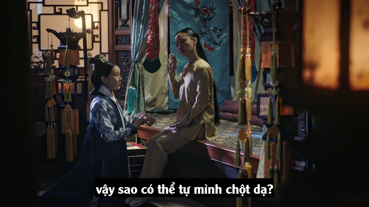Hai vị khách đầu tiên đến thăm nom bệnh tình của chủ vị Hàm Phúc cung là Hoàng hậu và Gia Tần. Khỏi phải đoán, Hoàng hậu và Gia tần đi từ bất ngờ này đến bất ngờ khác, họ không sợ, họ chỉ là hơi hoang mang về việc Hàm Phúc cung của Quý phi từ khi nào lại dán kín bùa như một cái động bùa.