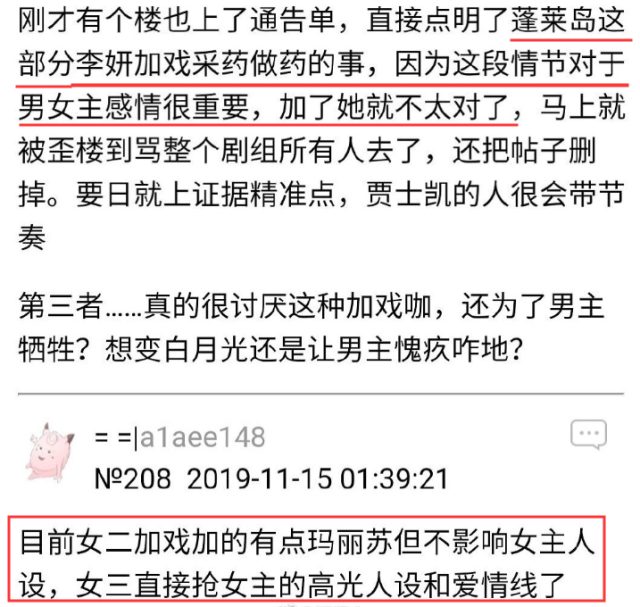 Có cư dân mạng còn tiết lộ rằng: “Hiện tại phần kịch của nữ hai đã được tăng lên một cách nhảm nhí, nhưng không ảnh hưởng đến nhân vật của nữ chính, còn nữ ba thì đã thẳng thừng cướp đi hào quang và tình yêu của nữ chính”.