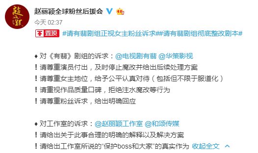 Sau hình ảnh đầy hàm ý của Triệu Lệ Dĩnh, fan của Triệu Lệ Dĩnh đã đưa ra 4 điểm yêu cầu dành cho đoàn phim Hữu Phỉ.