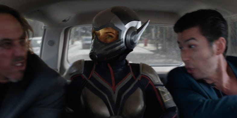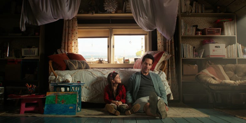 Mở đầu trailer là cảnh Ant-Man đang cưỡi xe tải và đuổi theo một chiếc xe khác. Anh ấy đã phóng to kích thước trở nên to lớn hơn, đu sau xe tải và giơ chân đạp vào xe bên cạnh. Tuy nhiên, mọi thứ không như ý muốn và anh bộc bạch với cô con gái của mình “Sao bố lúc nào cũng làm rối tung mọi việc lên thế này”.