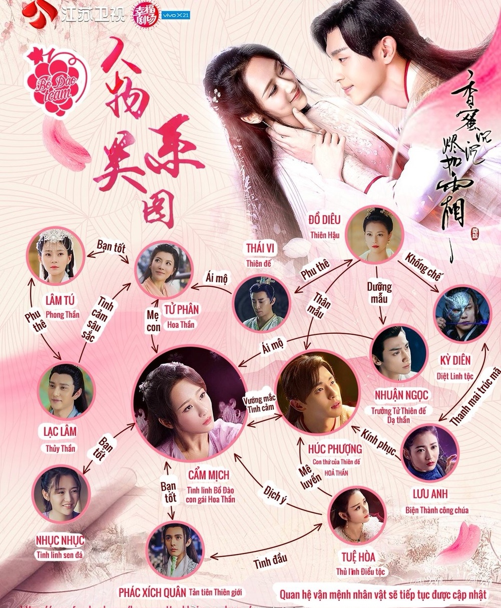 Quan hệ vận mệnh của các nhân vật chính trong “Hương mật tựa khói sương” (Nguồn: Fanpage Drama Hương Mật Tựa Khói Sương • 香蜜沉沉烬如霜 VNFC)