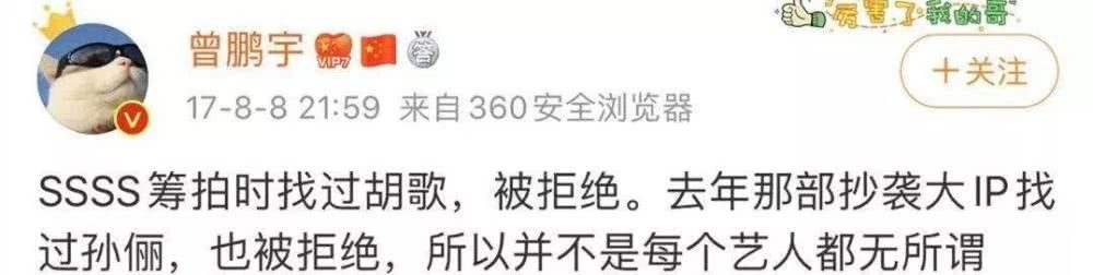 Không chỉ có Vương Truyền Quân, Hồ Ca cũng là tuýp nghệ sỹ nói không với đạo phẩm. Lúc trước, nhà sản xuất bộ phim Tam sinh tam thế: Thập lý đào hoa từng hy vọng Hồ Ca sẽ là nam chính trong tác phẩm của họ. Kết quả cuối cùng, nam tài tử cự tuyệt, tuyên bố sẽ không tham gia bộ phim.