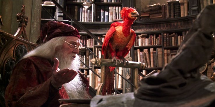 Đối với fan của Harry Porter, hình ảnh phượng hoàng Fawkes có lẽ không còn xa lạ. Sinh vật này vốn đã có mối liên hệ đặc biệt với Albus Dumbledore từ lâu và trong tương lai của Dumbledore, phượng hoàng Fawkes sẽ luôn đồng hành và sẵn sàng hi sinh để cứu được mạng sống của Dumbledore.