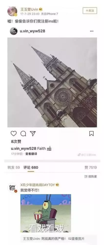 Còn có nữ diễn viên Vương Ngọc Văn - hợp tác với Tiêu Chiến trong Học viện Siêu tinh tinh, khi cô vừa thông báo đã đăng ký tài khoản instagram, Tiêu Chiến lập tức xuất hiện chủ động trả lời: “Tôi cảm thấy không được“. Thời điểm đó, trông Tiêu Chiến vừa vô tư lại đáng yêu, chẳng cần lo nghĩ quá nhiều như bây giờ.