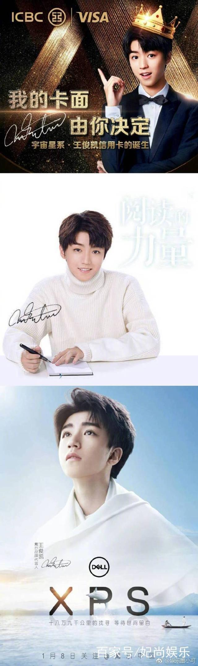 Hiện tại Vương Tuấn Khải là gương mặt đại diện của 16 thương hiệu nổi tiếng tại Trung Quốc và Thế giới bao gồm: Rejoice, Purcotton, Oppo, Swatch, Roseonly, Lancôme, Nike Air, Dolce&, Gabbana, ICBC, Dell, R15, Bolon, Snickers, 51 talk, Ireader.