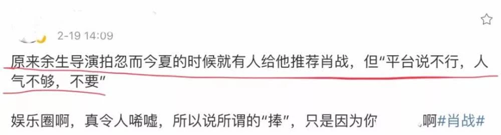 Về sau, trong lúc đạo diễn Lữ Doanh chuẩn bị dự án phim Dư sinh, xin chỉ giáo nhiều hơn là vào tháng 8 năm 2019 thì khi đó danh tiếng của Tiêu Chiến đã tăng cao. Đoàn làm phim lập tức xác định nam chính sẽ do Tiêu Chiến đảm nhận, có lẽ đạo diễn cũng không muốn bỏ lỡ thêm một cơ hội nữa. Cư dân mạng bình luận: “Tiêu Chiến thực sự rất nỗ lực, dựa vào thực lực của mình để đi đến ngày hôm nay, làm người bội phục”.