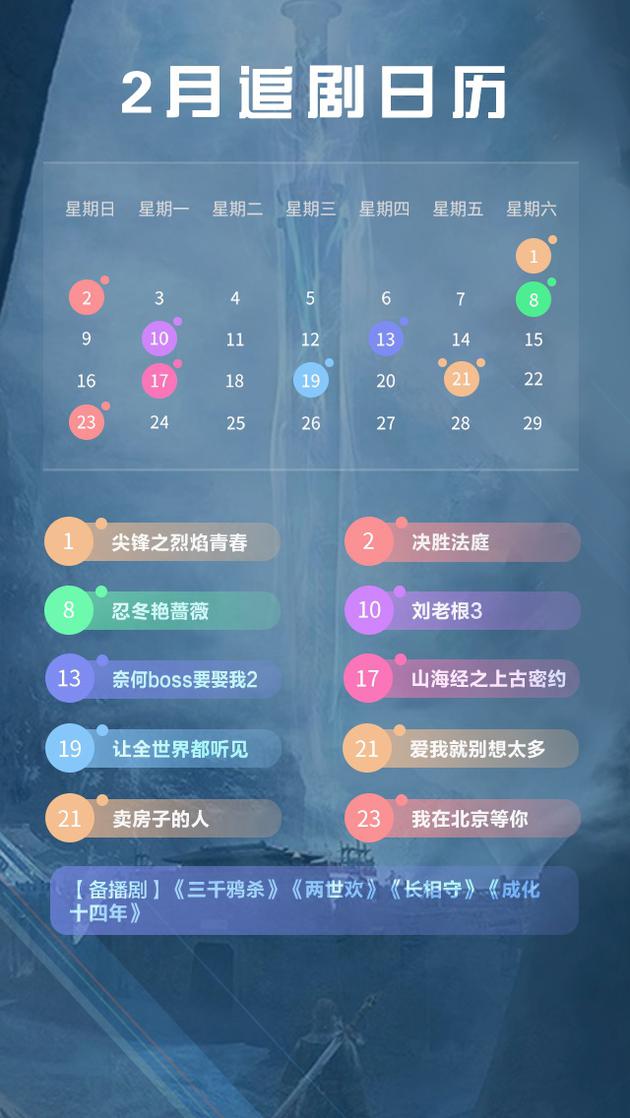 Mùa xuân năm 2020 với tình hình đặc biệt như hiện nay, rất nhiều người chọn cách ở nhà theo dõi các phim truyền hình được phát sóng. Bên cạnh Tam sinh tam thế chẩm thượng thư, Nhiệt huyết đồng hành, Tương dạ 2, Ái tình công ngụ 5, Cẩm y chi hạ… đang được ra mắt thì những bộ phim mới vào tháng 2 như Thượng cổ mật ước, Nữ nhân bán nhà, Lưỡng thế hoan, Năm Thành Hóa Thứ Mười Bốn… đều là những lựa chọn không tồi.