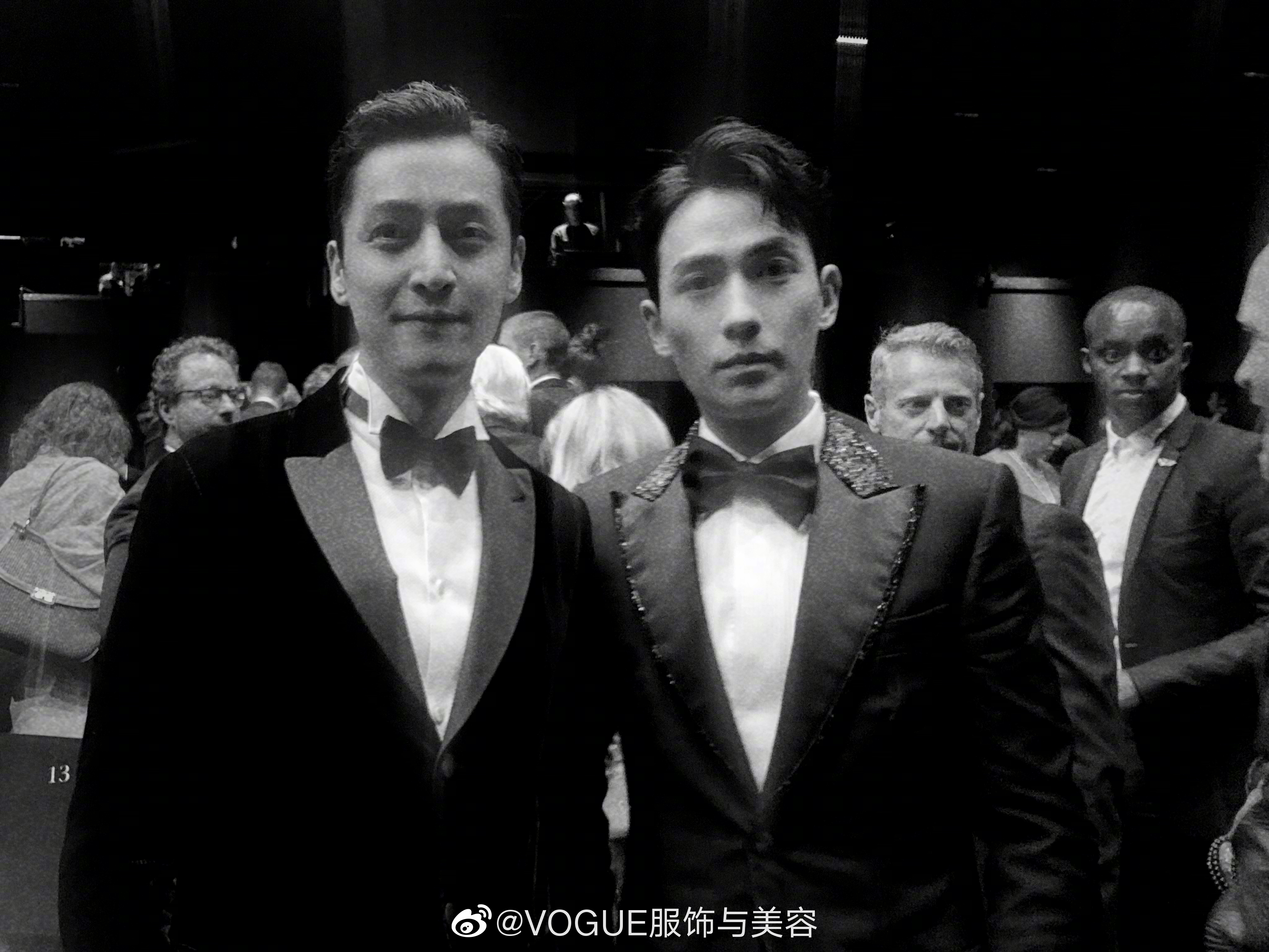 Chu Nhất Long và Hồ Ca cùng chụp chung hình tại Cannes.