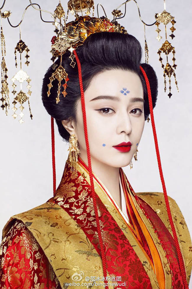 Phần trang điểm của cô cũng nổi bật, có một thời gian phong cách trang đểm Võ Tắc Thiên của Phạm Băng Băng làm mưa làm gió khắp giới trẻ Trung Quốc.