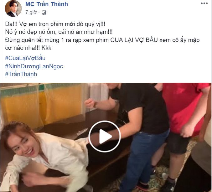 Mới đây, nam diễn viên Trấn Thành đăng tải trên trang cá nhân một đoạn hậu trường thực hiện bộ phim điện ảnh Tết Cua lại vợ bầu với sự tham gia của Ninh Dương Lan Ngọc. Ngay đoạn mở đầu video, khán giả đã nhận ra điểm khác thường khi cô nàng Lan Ngọc diện quần vải ngắn nằm soài ra bàn vì vô tình bị bung khóa.
