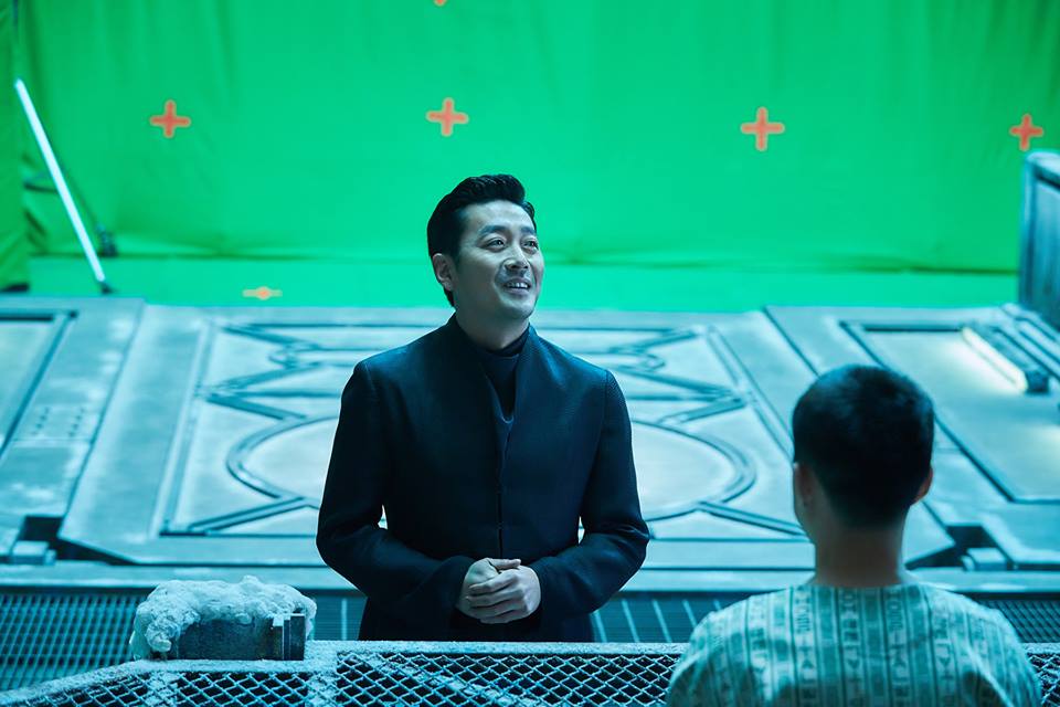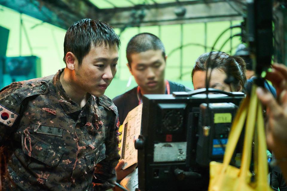 Dù là cảnh hậu trường, nhưng ánh mắt, biểu cảm gương mặt của “tài tử” Ha Jung Woo vẫn rất chuyên nghiệp.