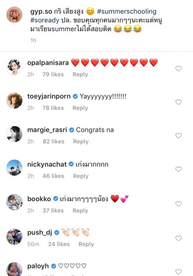 Thông tin Gypso Ramita trúng truyển ngôi trường đáng mơ ước này khiến fan vô cùng tự hào. Bên cạnh đó, bạn bè đồng nghiệp như Push Puttichai, Toey Jarinporn, Margie Rasri… cũng gửi lời chúc mừng đến Gypso Ramita.