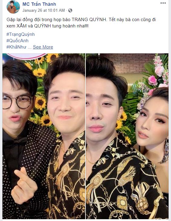 Cùng thông báo doanh thu ngày đầu năm nhưng Trấn Thành “quên” nhắc đến Trạng Quỳnh.
