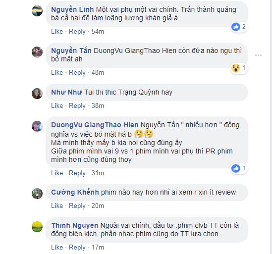 Còn về phía đạo diễn Đức Thịnh và nhà sản xuất Trạng Quỳnh, những điều khoản ràng buộc về quảng bá cho bộ phim ở mỗi diễn viên, lẽ ra cần được thảo luận và quy định chặt chẽ trong hợp đồng, để đảm bảo hiệu quả truyền thông cho tác phẩm khi ra rạp. Mặc dù đạo diễn Trạng Quỳnh liên tục khẳng định mình không quan tâm chuyện Trấn Thành có đăng gì về phim trên Facebook hay không, thế nhưng nội bộ ekip của phim cũng lời ra tiếng vào không hài lòng.