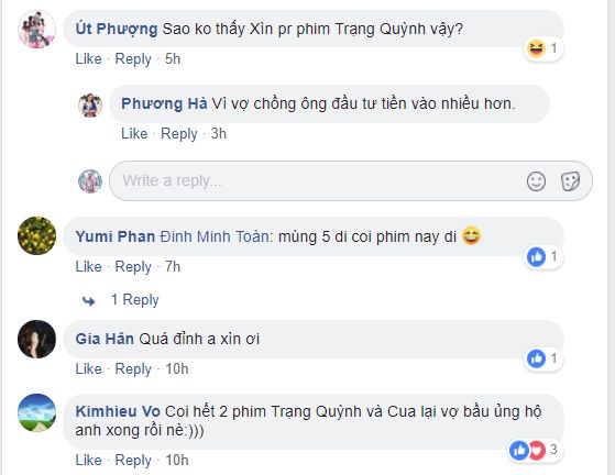 Vì theo các báo cáo thống kê chính thức có “dấu đỏ” (có xác nhận chính thức) của các nhà phát hành thì hiện nay Trạng Quỳnh chỉ đang cạnh tranh vị trí đứng đầu với phim How To Train Your Dragon 3 nên không có lý đó gì, Trạng Quỳnh phải gây thêm thị phi, đối đầu các bộ phim Việt khác”.