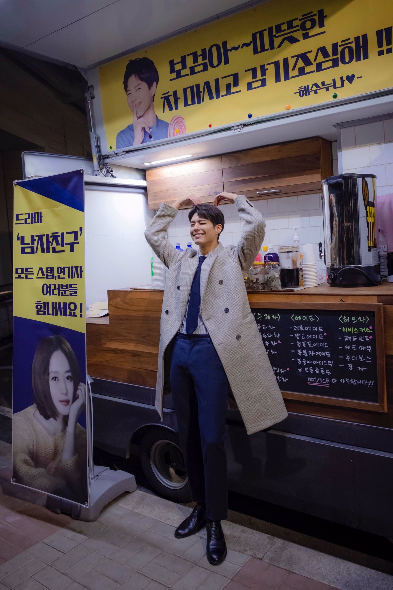 Vào ngày 14/01 vừa qua, Park Bo Gum đã đăng bức ảnh chụp đứng trước một chiếc xe tải đồ uống lên mạng xã hội Twitter. Được biết, nữ ngôi sao hạng A - Kim Hye Soo đã gửi đến trường quay của bộ phim truyền hình tình cảm Encounter đài tvN. Chàng ngôi sao sinh năm 1993 nở nụ cười tươi tắn trên khuôn mặt, tạo trái tim lớn bằng hai tay của mình kèm theo dòng chú thích: “Cả cơ thể và trái tim em được sưởi ấm nhờ có Hye Soo noona. Cảm ơn chị ạ”.