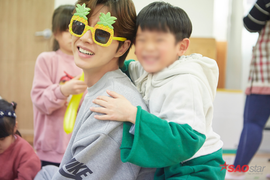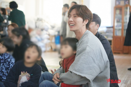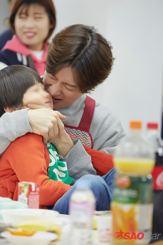 Dù bị che mờ nhưng vẫn thấy nụ cười tươi sáng của cậu bé khi ở cạnh Park Hae Jin. Thực sự giống một cảnh trong những bộ phim truyền hình.